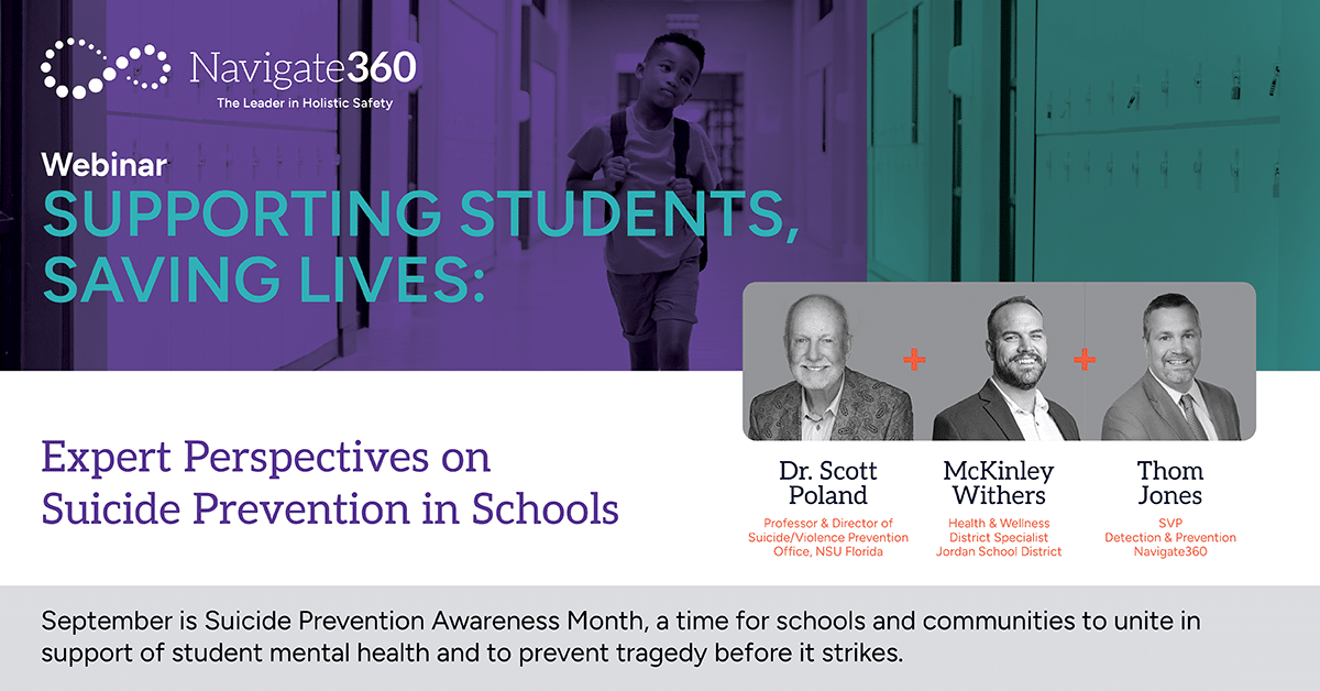 September is Suicide Prevention Awareness Month, a time for schools and communities to unite in support of student mental health and to prevent tragedy before it strikes. Join experts Dr. Scott Poland and Dr. McKinley Withers on Thursday, September 18 at 2 PM (ET) for an important conversation designed to equip district and school leaders with practical strategies to proactively identify and support students at risk of suicide.